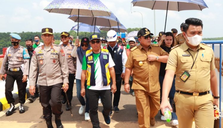 Lampung Timur (MIN-SMSI) – Kapolres Lampung Timur AKBP Zaky Alkazar Nasution dampingi Gubernur Lampung Arinal Junaidi dan Kapolda Lampung Irjen Pol. A.Wiyagus dalam acara hijaukan bumiku di Bendungan Marga Tiga, Selasa (26/9/22).