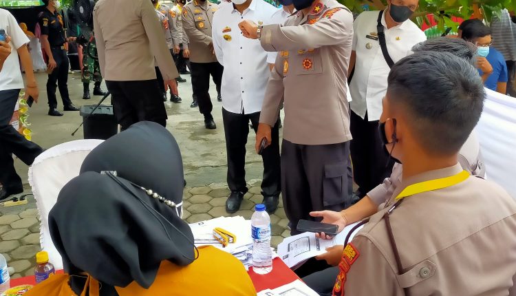 Pesawaran Lampung -Waka Polda Lampung Brigjen Pol Subiyanto datangi kegiatan vaksinasi massal di Kabupaten Pesawaran yang dilaksanakan di GSG Pemkab Pesawaran dengan persiapan 2000 dosis vaksin dengan rincian 1.000 (seribu) Dosis Sinovac milik Dinas Kesehatan Kabupaten Pesawaran dan 1.000 (Seribu) Dosis Astrazeneca milik Polres Pesawaran, Rabu (27/10).