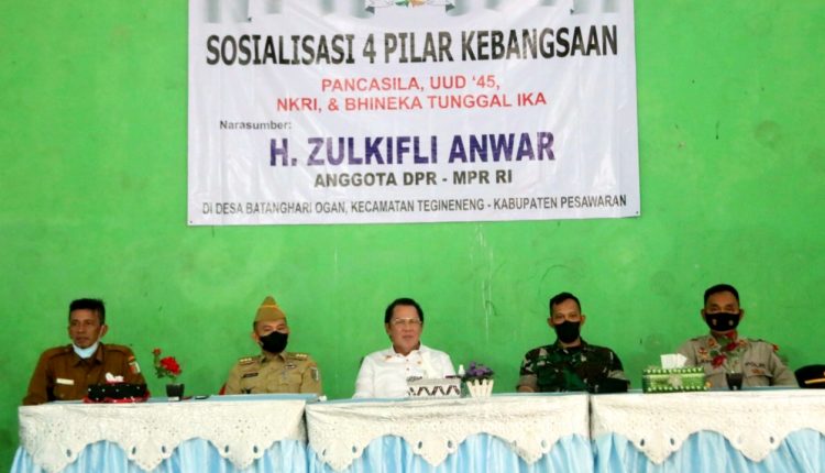 Pesawaran (MIN-SMSI) – Anggota MPR/DPR RI Fraksi Partai Demokrat Zulkifli Anwar kembali menggelar sosialisasi Empat Pilar Kebangsaan kepada ratusan masyarakat Desa Batang Hari Ogan Kecamatan Tegineneng Kabupaten Pesawaran.